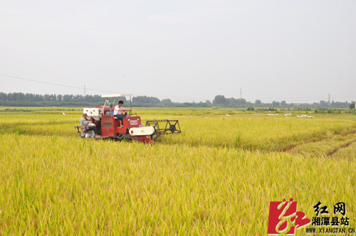红网湘潭县站7月19日讯(分站记者 罗建 实习生 杨建)时值七月中旬,正是早稻收割的最佳时期,一年一度的“双抢”大会战拉开大幕,湘潭县内广阔的田间到处洋溢着一派忙碌的收割景象。7月18日上午,天气晴好,河口镇中湾村的田间回荡着机器的轰鸣声,村民杨师傅正在田里忙着收割早稻。烈日下,杨师傅虽然忙得是满头大汗,但是望着眼前金黄饱满的谷粒,丰收的喜悦溢于言表,“今年又是一个丰收年啊!”