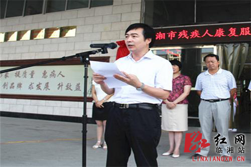 红网临湘站7月22日讯(分站记者 杨柳)今天(7月22日),临湘市残疾人康复服务中心揭牌开业仪式在市中医院举行,这标志着临湘市在残疾人康复专业服务领域实现了零的突破。临湘市政府副市长马榕、彭海云出席揭牌仪式并为该中心揭牌。临湘市残联理事长杨岳良主持该仪式。临湘市政府副市长彭海云在仪式上提出三点希望:一是希望市残联与市中医医院通力合作,把康复服务中心经营好,充分发挥其为临湘市残疾人服务的作用;二是希望市中医医院不断深化康复服务中心的服务内涵,发挥技术优势,更好的为临湘市残疾人朋友服务;三是希望全市各相关部门大力宣传、积极支持,共同促进临湘市残疾人事业更好的发展。