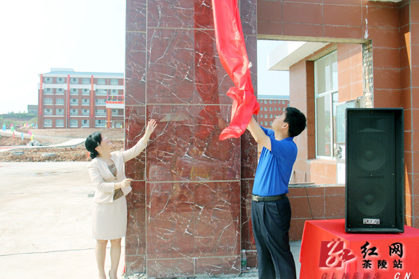 (茶陵县委书记彭新军、副县长陈艳娟共同为城东学校揭牌)