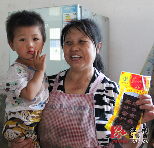 在与村民的交谈中,我们获悉一位在本村“打工”的“卤豆腐大嫂”,她的名字叫肖小叶。在她的加工厂房,我们采访了她。现年55岁的她租用村民空余的厂房,生产“红日”商标的卤豆腐,每天加工黄豆300斤,每天有7名工人做事,产品全部销往长株潭地区,年销售额200多万元。“我打的豆腐都是手工制作,没有通过分离机过滤,口感比机制口腐更软更细。”肖小叶对自己的产品很是自信。当我们问她是否需要政府扶持时,她说,“当前最困惑的是流动资金不足,最希望银行能为自己解决创业贷款,有了资金保障就能开足马力生产了。”