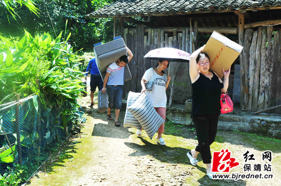 保靖残联的工作人员正在向群众家中搬运物资 周改玲 摄