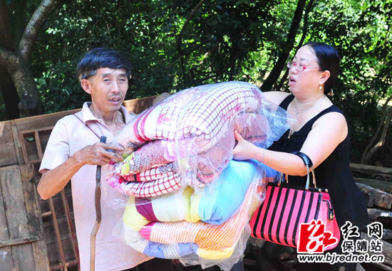 残联工作人员向群众送来两床棉被 周改玲 摄