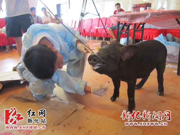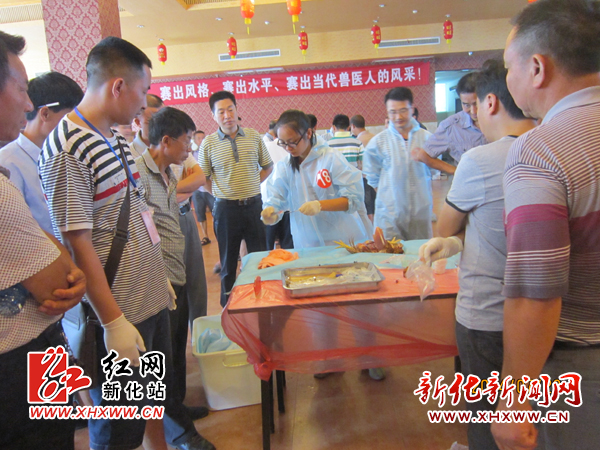 红网新化站7月25日讯(分站记者 杨尚勤 通讯员 方厚生)近日,新化县开展了首届动物防疫技能竞赛。娄底市市畜牧水产局总畜牧师熊玲玲和娄底市兽医局局长左国来到场指导,县人民政府副县长李南新致开幕词。全县27名动物防疫员参加了竞赛,30个乡镇动物防疫站进行组团观摩。这次动物防疫员职业技能竞赛是为贯彻落实《国家中长期人才发展规划纲要(2010——2020)》和《国家中长期动物疫病防治规划(2010——2020)》文件精神,根据《人力资源和社会保障部关于组织开展2014年中国技能大赛的通知》文件要求而举办的,旨在加强动物防疫人才与队伍建设,提升动物防疫队伍综合素质和动物疫病综合防控能力。