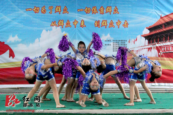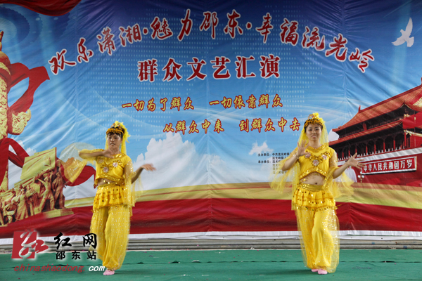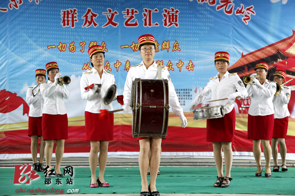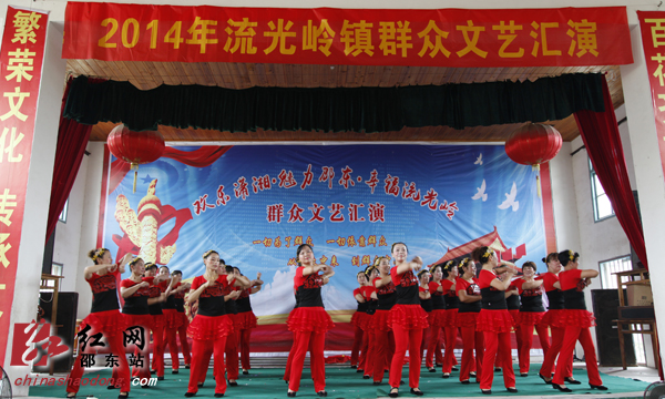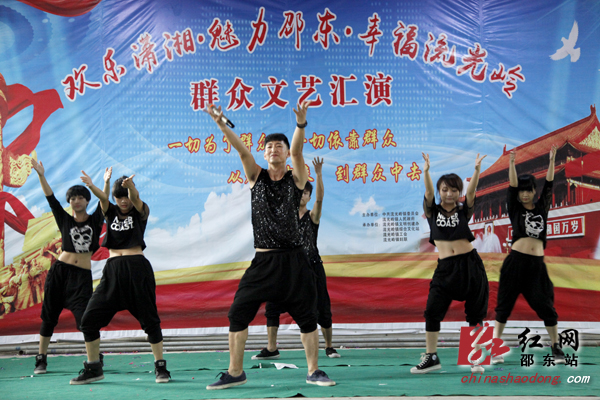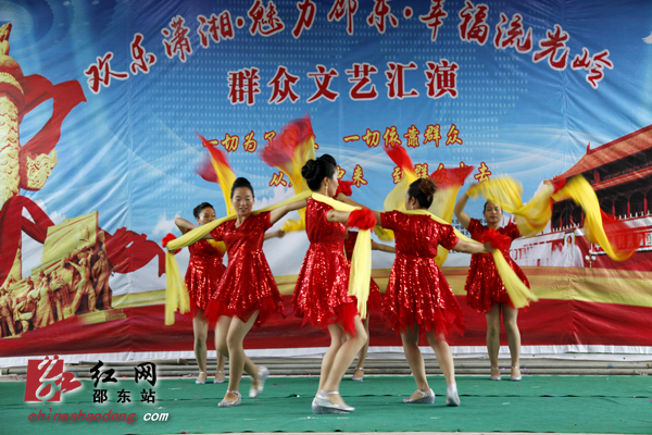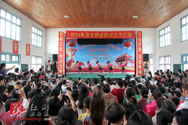红网邵东站7月25日讯(通讯员 王江梅 郑凌颉)繁荣文化,传承文明;百花齐放,百家争鸣。7月25日上午,邵东县流光岭中心小学的礼堂人声鼎沸,“欢乐潇湘·魅力邵东·幸福流光岭”群众文艺汇演在这里欢乐上演。这是“欢乐潇湘”活动在邵东各乡镇开展以来,参演人数最多,到场观众也最多的一场。演出开始没多久,原本还闷热的天气突然狂风暴雨大作,处于低地的礼堂也涌进了不少雨水。但观众和演员们的热情还是丝毫不减。腰鼓节目表演时,因为暴雨,小学的礼堂暂时停了电,但舞台上的演员们还是坚持表演完了全场,观众们也无人离场,还是坐在自己的座位上等待着下一个节目的开始。