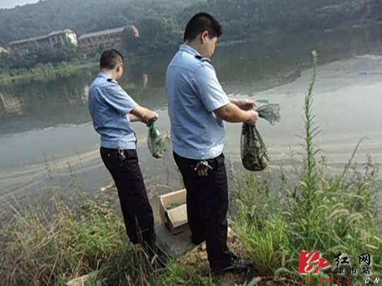 执法人员放生野生动物