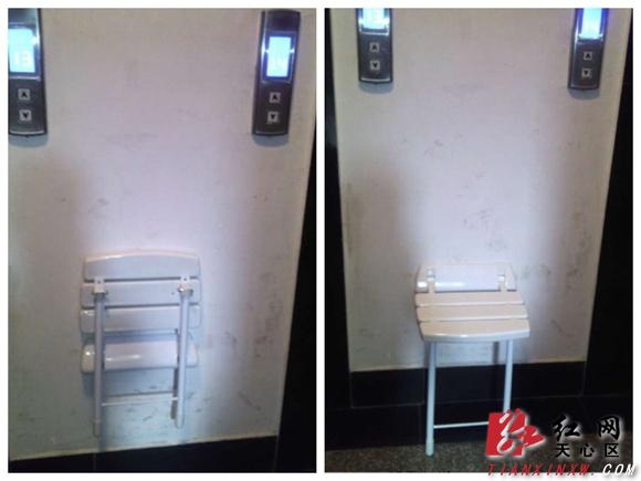 小区电梯口旁的“爱心凳”。