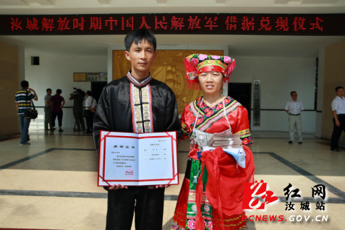 红网汝城站7月29日讯(分站记者 田源 通讯员 林清航)军民鱼水,真情难忘;时光倒流,借据兑现。7月29日红日高照,湖南省郴州市汝城县三江口瑶族镇政府内,当该县县委常委、常务副县长陈向华将捐赠证书及6.6万元兑现款郑重地递到三江口村谭春良手中时,在场人员无不热泪盈眶、感慨万千。这是汝城县委、县政府铭记军民鱼水情,兑现64年前解放军借据的一幕感人场景。