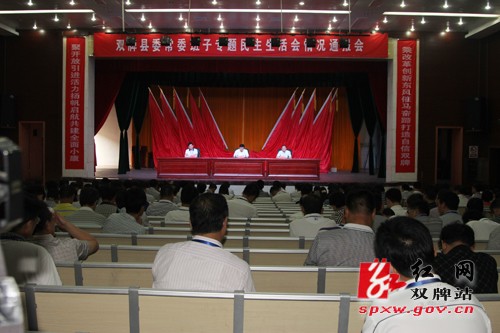 红网双牌站7月29日讯(通讯员 唐娟)7月25日,双牌县委常委班子专题民主生活会情况通报会在县礼堂召开,会议通报县委常委班子专题民主生活会情况,安排部署全县下阶段教育实践活动。双牌县委书记苏小康,县委副书记、县长魏和胜,市委督导组常务副组长李劲涛出席会议并在主持台就座。会议由县委副书记、县长魏和胜主持。会上,双牌县委书记苏小康就县委常委班子专题民主生活会从会议基本情况、会议准备情况、开展批评及点评情况、领导班子存在的主要问题、下阶段整改措施五个方面进行了通报。