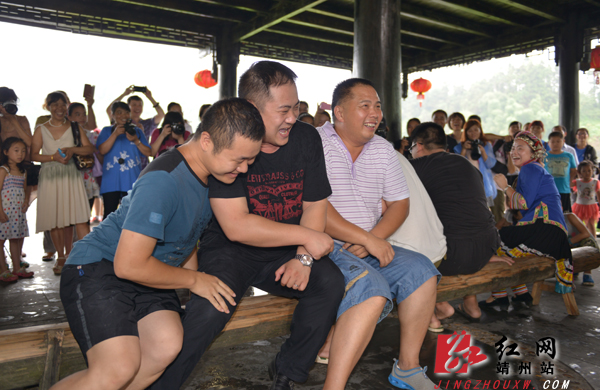 传统的挤油游戏备受游客青睐 龙本亮 摄