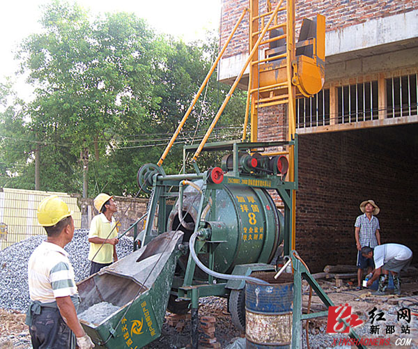 红网新邵站7月30日讯(通讯员 刘志坚)7月29日上午,新邵县陈家坊镇长江村“农民施工队”人员在帮村里建房户楼面倒混泥土。这支“农民施工队”由候德生、杨海云等7位具有这方面技术特长的村民自发组建,投入8万元资金购置了搅拌机、铲车、振动器、拖车等设备,专门为修路、建房地基、地梁、楼面等提供倒混泥土作业服务。由于这支“农民施工队”人员个个能吃苦耐劳,施工时讲究质量,收费合理,深受当地建房村民们欢迎。
