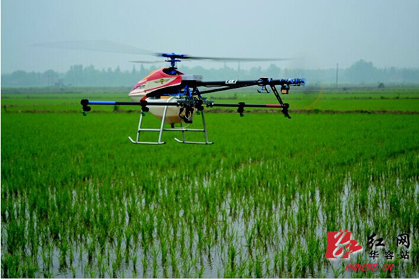 华容县胜峰乡张家院家庭农场无人直升飞机“突袭”早稻病虫害严非平摄