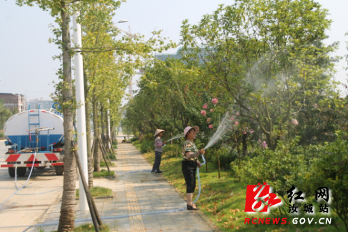 目前,汝城县园林管理所每天出动洒水车8台套,投入120多人次对城区主干道绿化带、公园绿地、广场绿地、街头小游园绿地等进行全面浇灌,保证早晚浇灌绿化带各1次,每天浇水1000多吨,让城区绿化苗木不再“喊渴”。