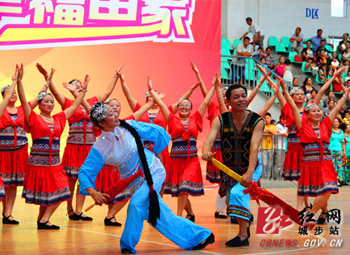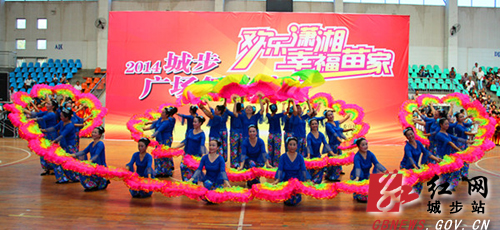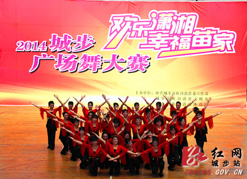 2014年“欢乐潇湘·幸福苗家”城步广场舞大赛在县一中体艺馆隆重举行