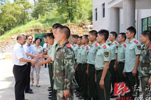 红网城步站7月31日讯(分站记者 刘令 实习记者 肖辉斐)7月30日下午,值“八一”建军节来临之际,县委书记罗建南率县五大家主要领导及全体县委常委前往县武装部、县消防中队、县武警中队和西岩某部驻军,走访慰问广大武警官兵,为他们送去了慰问物资和节日的问候。