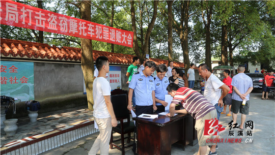 红网辰溪站8月1日讯(通讯员 孙海波)7月30日上午,辰溪县公安局刑警大队在县看守所举行退赃大会,14位失主欣喜地从现场领回了各自被盗的摩托车。在退赃现场,民警积极引导失主办理领车及补办车牌号等手续,并耐心宣传相关安全防范知识。同时,针对部分被盗车辆车锁被损需更换的情况,民警聘请专业修车人员服务,方便失主将摩托车顺利骑回。通过2个多小时的辨认核实,共有12辆三轮摩托车和2辆两轮摩托车物归原主。此次集中退还的被盗摩托车系一个流窜在辰溪、沅陵等地的盗窃团伙所为,案件于今年6月初被辰溪警方破获,主要犯罪分子已全部被抓获。