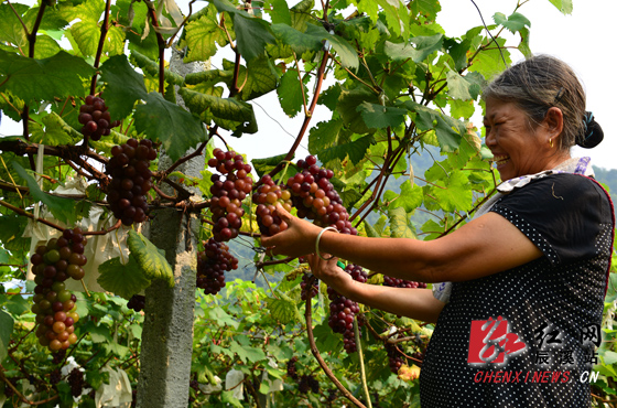 “来,来,先吃,先吃葡萄!”还没当我们开口,向仕军的妻子刘八妹爽快递过来一串葡萄。交谈中我们得知,他们家共种了两亩葡萄,有半亩多是2012年8月种的,今年开始大挂果。她高兴地说:这半亩多地至少产葡萄2000多斤,收入可以突破10000元。