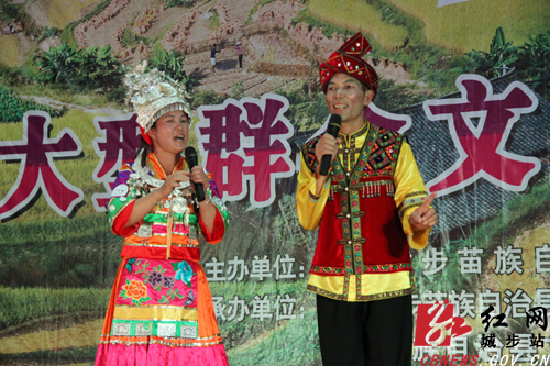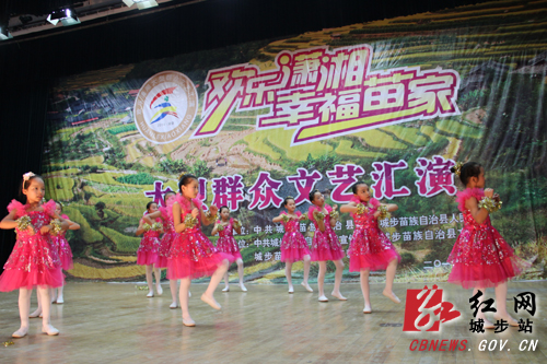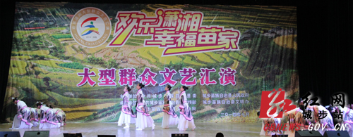 红网城步站8月5日讯(分站记者 刘令 实习记者 肖辉斐)“好久没听妹唱歌,丸心想成血坨坨;今日听妹唱几句,听一句来好一坨。”8月4号下午,“欢乐潇湘·魅力邵阳”之城步专场“幸福苗家”大型群众文艺汇演在县行政中心大礼堂激情上演。独具魅力的民族文化和浓郁的苗家风情,为观看演出的群众奉上了一场文化的饕餮盛宴。歌舞《挑担茶叶上北京》拉开了演出序幕,这首歌曲几乎完全源用了城步苗族婚嫁歌曲《贺郎歌》,在开场就展现了民族相互融合,共同发展的魅力;现代舞《大家一起来》体现了城步新一代的活力与激情;情歌对唱《生死要连一百年》散发出城步山歌文化非同一般的原生态魅力和吸引力;苗族舞蹈《苗伞传情》、《挤月呦》则描述了苗家儿女浪漫又活泼的爱情;女生小组唱《苗乡美》描绘了一幅美丽的苗家人民生活画卷,将苗家姑娘的柔美、勤劳、羞涩和苗家小伙的爱恋情怀表现的淋漓尽致;用乡音表演的小品《浪子回头》情真意切,劝诫人们远离毒品,爱护家人,靠自己的劳动争取美好生活;唢呐独奏《绣荷包》节奏欢快,让现场比夏日更加激情,激情中又带着羞涩;古典舞《杨门毓女》将本次文艺汇演推上了最高潮,城步的杨门后裔们用他们非凡的舞姿讲述杨家将里动人的故事,回顾历史,展望未来。