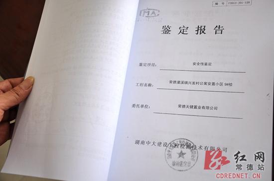鼎城区住建局拿出房屋鉴定报告,表示该房屋合格。