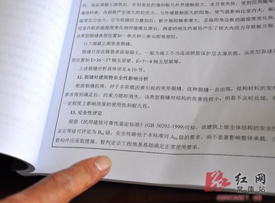鼎城区住建局质量监察管理站站长梁勇向记者出示房屋检测报告。