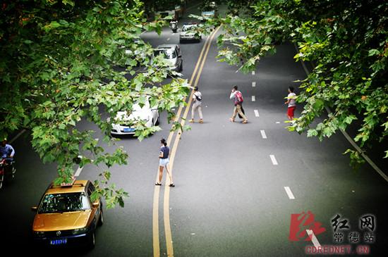 8月7日,红网常德站记者走访市城区朗州路市一中路口、市政府红绿灯路口等路段发现,不少市民不走斑马线和人行天桥,随意横穿马路,过往车辆频频传来紧急刹车声,险象环生,让人不禁为之捏把冷汗。