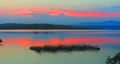 7月30日,夕阳下风景优美的常德市鼎城区蔡家岗镇五里溪水库。