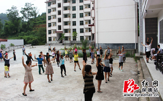 红网保靖站8月14日讯(通讯员 杨吕 田方)一改过去镇上大部分村民打麻将的恶习,村民们自觉到镇政府文化站院子集合,跳起广场舞,男人们驻足观望,女人们翩翩起舞,这已成为野竹坪镇一道亮丽的风景线。8月13日,村民秦玉娥将自己跳广场舞照片发到微信上,瞬间朋友圈数人点赞。8月10日,保靖县野竹坪镇首届广场舞培训班开班,吸引了镇机关干部、学校教师职工、6个行政村村民妇女40多人前来参加,积极备战“欢乐潇湘·乐在湘西·舞动保靖”2014年湘西原创广场舞大赛。