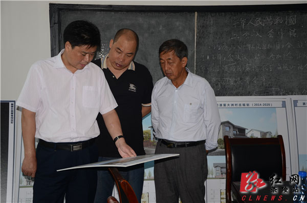 茶陵县委书记彭新军(左一)详细了解渡里村村庄规划情况