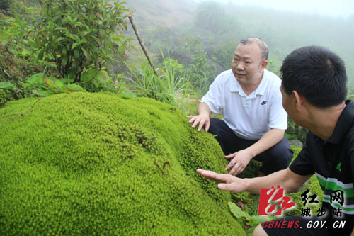 县委书记罗建南叮嘱一定要保护好这片千年苔藓。肖丁勤 摄