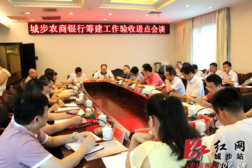 红网城步站8月19日讯(分站记者 刘令 实习记者 吴文雅 通讯员 陈峣)8月18日,湖南省农商银行筹建验收进点会座谈会在城步儒林酒店召开,省银监局验收工作小组进驻城步信用联社,即将对筹建农商银行前期准备工作进行验收。县委副书记、县长杨博理,县委常委、常务副县长杨映林,县人大副主任杨青礼出席会议,相关职能部门负责人参加了会谈。会上,县委副书记、县长杨博理代表城步县致欢迎词,县委常委、常务副县长杨映林代表城步农商银行筹建工作小组汇报前期准备工作情况。大信会计事务所长沙分所项目经理王翠兰、湖南新融达资产评估公司项目经理刘教军分别就清产核资情况、资产评估情况进行了作了汇报说明。