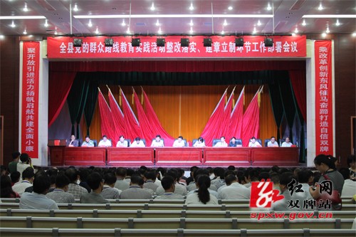 红网双牌站8月20日讯(通讯员 何恒)8月19日,双牌县党的群众路线教育实践活动整改落实、建章立制环节工作部署会议在县礼堂举行。双牌县委书记苏小康,县领导唐冬华、唐彦、吴国政、李长于、陈丽、唐晓波、秦小国、邓洪、刘建华、刘洁出席会议。会议由县委副书记、县长魏和胜主持。永州市委第五督导组副组长彭新蓉到会指导。会议通报了全县“四风”突出问题专项整治情况,并就如何贯彻落实全市“四风”突出问题专项整治工作第三次推进会精神作了安排部署。