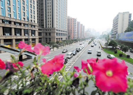 天桥上鲜花点缀,墙壁上爬山虎萦绕,路中央高大乔木更新换代……曾让居民颇有不满的南湖路完成蝶变,成为天心区第一条林荫大道。 王志伟 摄