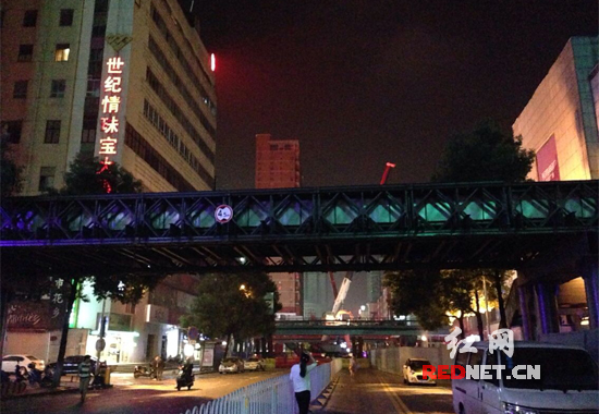 红网长沙8月20日讯(记者 刘容 实习生 张丹)昨晚11时左右,长沙司门口人行过街天桥接待完最后一批市民。再过一个小时,它就要面临被拆除。从2011年4月正式投入使用开始,到昨日,这座天桥在长沙服务了3年多时间,期间对解决解放西路黄兴南路交汇处的拥堵问题,作了不可小觑的贡献。