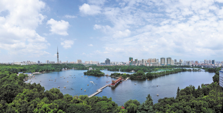 昨日,雨后的长沙空气格外清新,星城能见度非常高,年嘉湖一池碧水在蓝天白云的映衬下分外迷人,市民乘坐游艇在湖面穿行,享受天然氧吧的气息。据气象预报,长沙接下来还会有几天好天气,市民可多到户外畅享清新。记者 罗杰科 摄