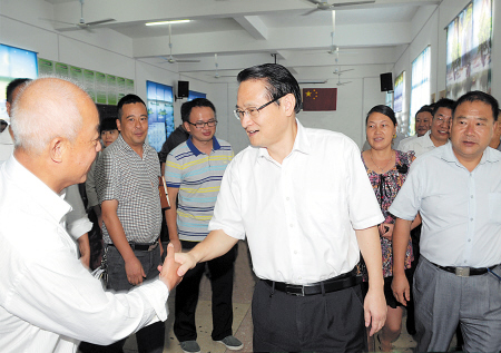 昨日,省委常委、市委书记易炼红在黄鹤村参与并指导党支部专题组织生活会后,与村民代表和党员亲切握手。周柏平 摄