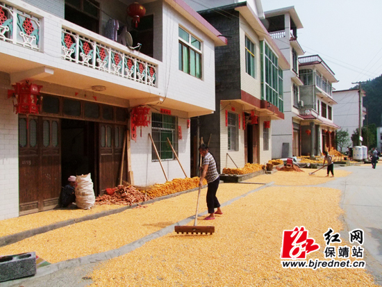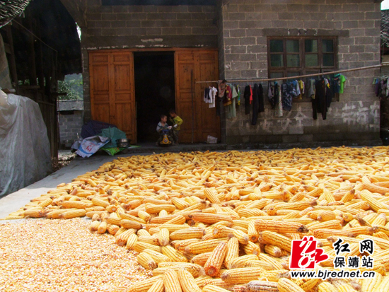 红网保靖站8月21日讯(通讯员 田亚君 实习记者 宿任人)8月19日,保靖县一扫前几日的阴雨天气,秋阳高照。毛沟镇略水村村民院落与道路两旁堆晒着黄灿灿苞谷,乡亲们趁着天晴将收获的苞谷晾晒。今年以来,面对今年七月以持续降水,雨水过多,病虫害多发的不良形势,该村民以科学的手段,积极的措施,扭转形势,收获了又一个金灿灿的秋天。