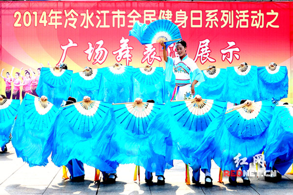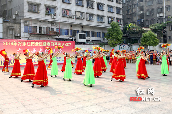 红网冷水江8月22日讯(通讯员 熊又华)8月21日,湖南省冷水江市委、市政府主办的2014年冷水江市全民健身系列活动之广场舞表演展示在冷水江市体育广场激情上演,为市民们奉上了一场精彩的视觉盛宴。来自冷钢社区健康快乐广场舞队、闪星社区广场舞队、云集广场舞队、阳光健身俱乐部、同兴乡同兴村广场舞队等代表队的广场舞表演精彩纷呈,既有浓郁的民族传统特色,又有激情奋进的时尚元素。