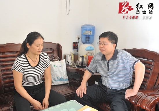 湘潭市岳塘区委常委、常务副区长谭海洋鼓励陈韬的妈妈要有信心,要把儿子培养好