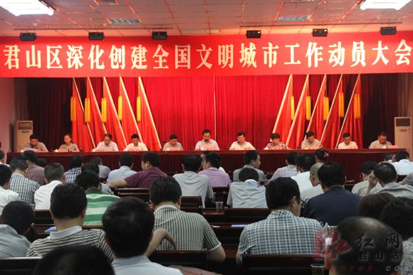 红网君山站8月25日讯(分站记者 王琼 洪伟)8月22日,岳阳市君山区深化创建全国文明城市工作动员大会召开,传达贯彻落实全市创建工作动员大会会议精神,动员全区上下迅速行动起来,以饱满的热情、临战的状态、扎实的作风,高标准做好创建迎检各项工作,打一场全国文明城市创建攻坚战。区委书记杨昆出席并讲话,区委副书记、区长谢胜主持会议,区创建全国文明城市工作领导小组全体成员,各镇(办)场、区直(驻区)各单位主要负责人等参加。