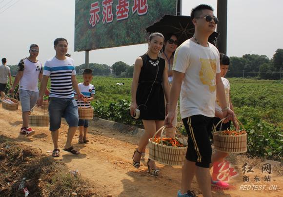 万名游客“约会”中国黄椒第一乡——衡东县三樟乡,在田间道路上等待节会开幕