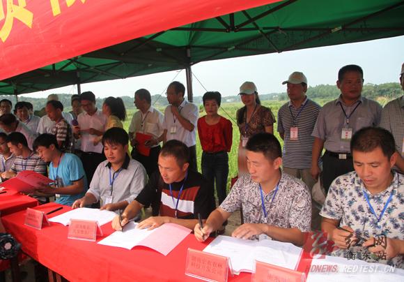 企业采购,在田埂上摆上桌子签约