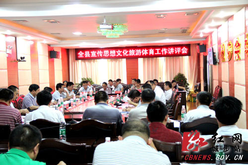 红网城步站8月25日讯(分站记者 刘令) 8月22日,全县宣传思想文化旅游体育工作讲评会在县档案局三楼会议室召开。会上,县宣传文化系统各单位,县旅游局、县体育局,各乡镇相关负责人分别就本单位2014年1至8月份宣传思想文化旅游体育工作情况、下步工作打算进行了汇报发言。县委常委、宣传部长曾伟子就各项工作进行了讲评,就下步工作进行了部署,并对各单位干部提出要求。副县长陈小兵出席会议并讲话。