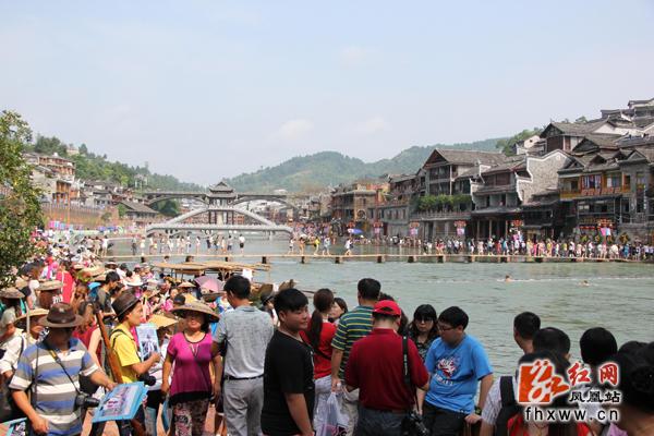 凤凰县超历史记录“7.15”洪灾一个月后,在全县上下以及社会各界大力支持下,凤凰古城灾后恢复建设基本完成,古城在较短的时间内恢复往日的风采。凤凰古城风景名胜区于8月16日正式对外开放,“夜凤凰”璀璨夺目的灯光再度亮起,古城的“山、水、城、人、文”形成美轮美奂的魅力景色再次喜迎国内外游客前来观光。据凤凰县旅游局统计数据显示,8月16日至23日,凤凰县共接待游客32.13万人次,同比增长20.2%,旅游收入2.68亿元,同比增长33.33%,凤凰古城灾后恢复正式对外开放第一周,凤凰县文化旅游持续出现升温的良好迹象。