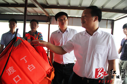 丁白渡口担负着望城区湘江两岸水上交通任务,是丁字街道和白沙州街道两岸互通的重要交通通道。杨利成要求渡口要保持救生衣的清洁卫生,要求签单员一定要准确地做好签单发航记录。在铜靖渡口,杨利成查看了灭火器等消防安全设施,要求渡口负责人要把标识标牌完善好,把安全设施设备维护好。