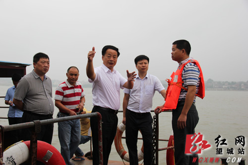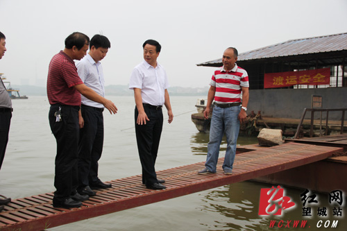 8月26日,长沙市望城区副区长杨利成(右三)在铜靖渡口督查水上交通安全工作。解巾英 摄
