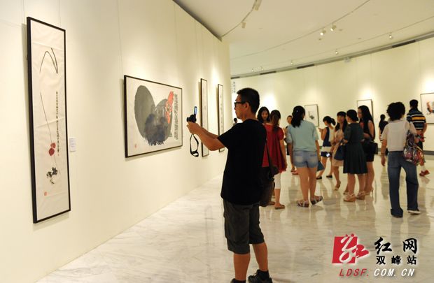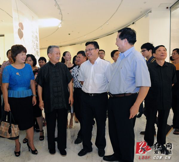 双峰县委书记吴德华、县委常委宣传部长彭云辉陪同有关领导和专家观看画展。