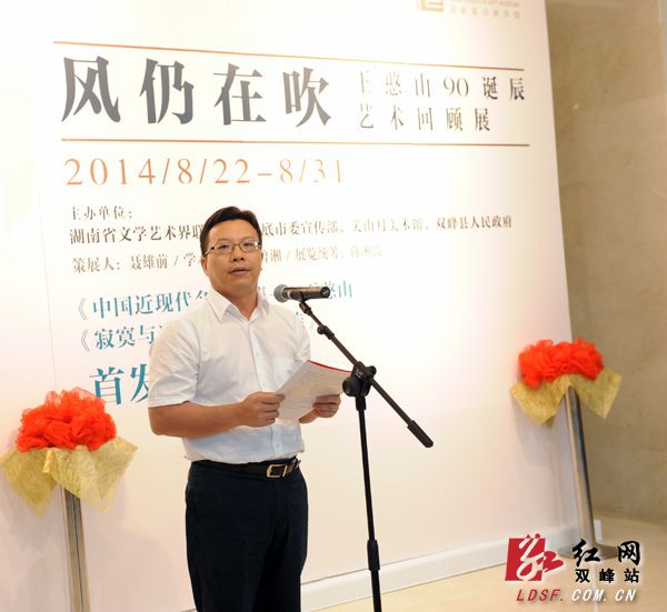 吴德华在致辞中感谢一直以来关心支持我县文化建设和经济社会发展的各界人士。吴德华指出,双峰文化底蕴深厚,文艺氛围浓郁,本次画展既展示了王憨山一生艺术的辉煌成就,更体现了双峰书画艺术事业的强大生命力。今年是王憨山先生90诞辰,我们将开展追思会、座谈会、画展等系列纪念活动,大力弘扬王憨山精益求精、锲而不舍的艺术精神和崇高品质。投资兴建书画艺术馆,积极开发建设书画艺术一条街,重点扶持书画创作,支持书画活动,让双峰的文化艺术得以传承和发展,让王憨山艺术思想得到发扬和光大。