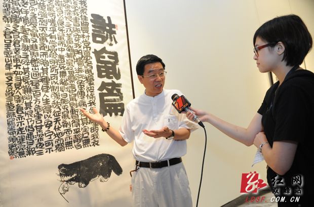 著名学者,凤凰卫视主持人王鲁湘向媒体记者解读王憨山画作