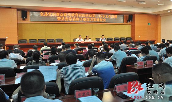 红网双峰站8月27日讯(分站记者 彭牡)8月26日,双峰县党的群众路线教育实践活动整改落实、建章立制环节工作部署暨县委常委班子整改方案通报会召开。会议紧紧围绕教育实践活动“照镜子、正衣冠、洗洗澡、治治病”的总要求,通过开门搞活动,主动接受广大干部群众和各界人士对县委整改工作的监督,进一步加大整改力度,着力解决突出问题,全面部署教育实践活动第三环节的工作,推动全县集中深入整改,确保实现县委开展教育实践活动的目标要求。