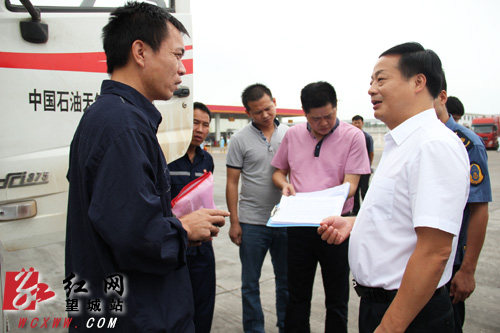 8月27日,杨利成(左三)在中石油西北销售公司长沙油库检查安全生产工作。