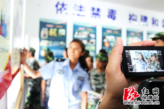 讲解员在向高中新生介绍毒品的危害 摄影 彭司进